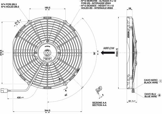 Spal Lüfter 12V, 350 MM, drückend | VA08-AP51/C-23S
