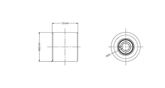Ø 80 mm, width 70 mm | Pallet truck roller: cast iron polyurethane, ball bearing, load capacity 320 kg | R02-70