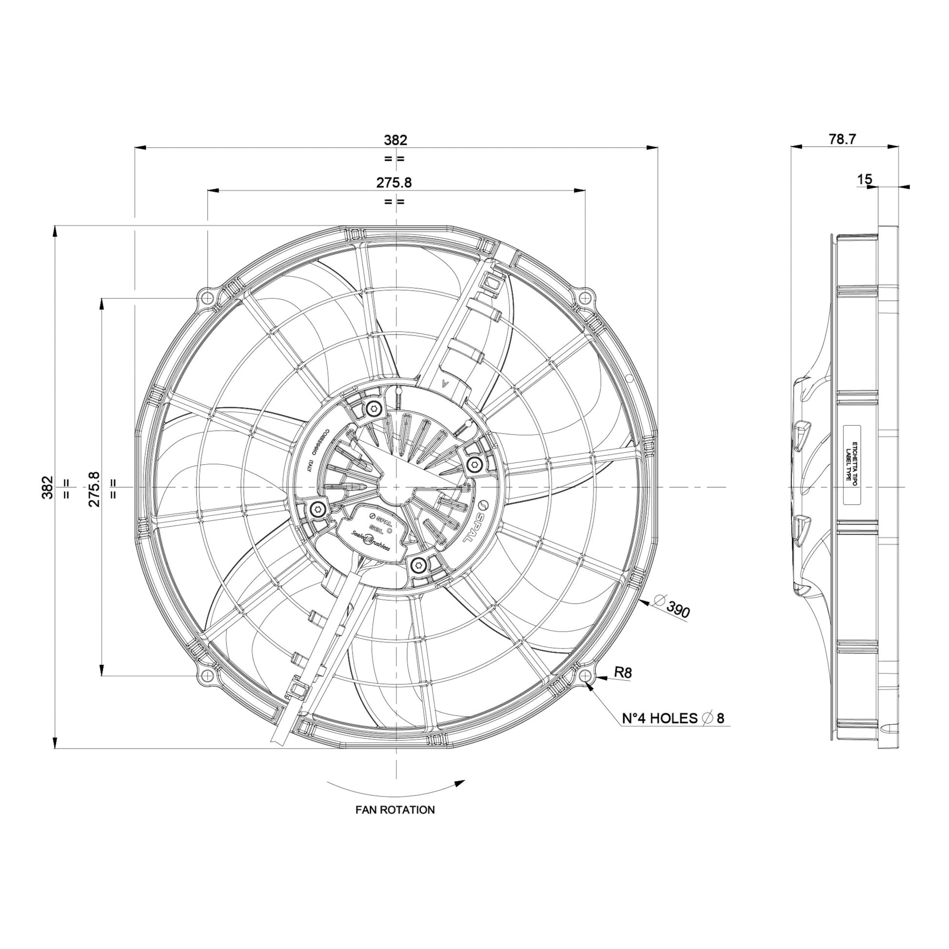 Spal Lüfter 12V, 355 MM, saugend | VA116-ABL505P/R/A-105A